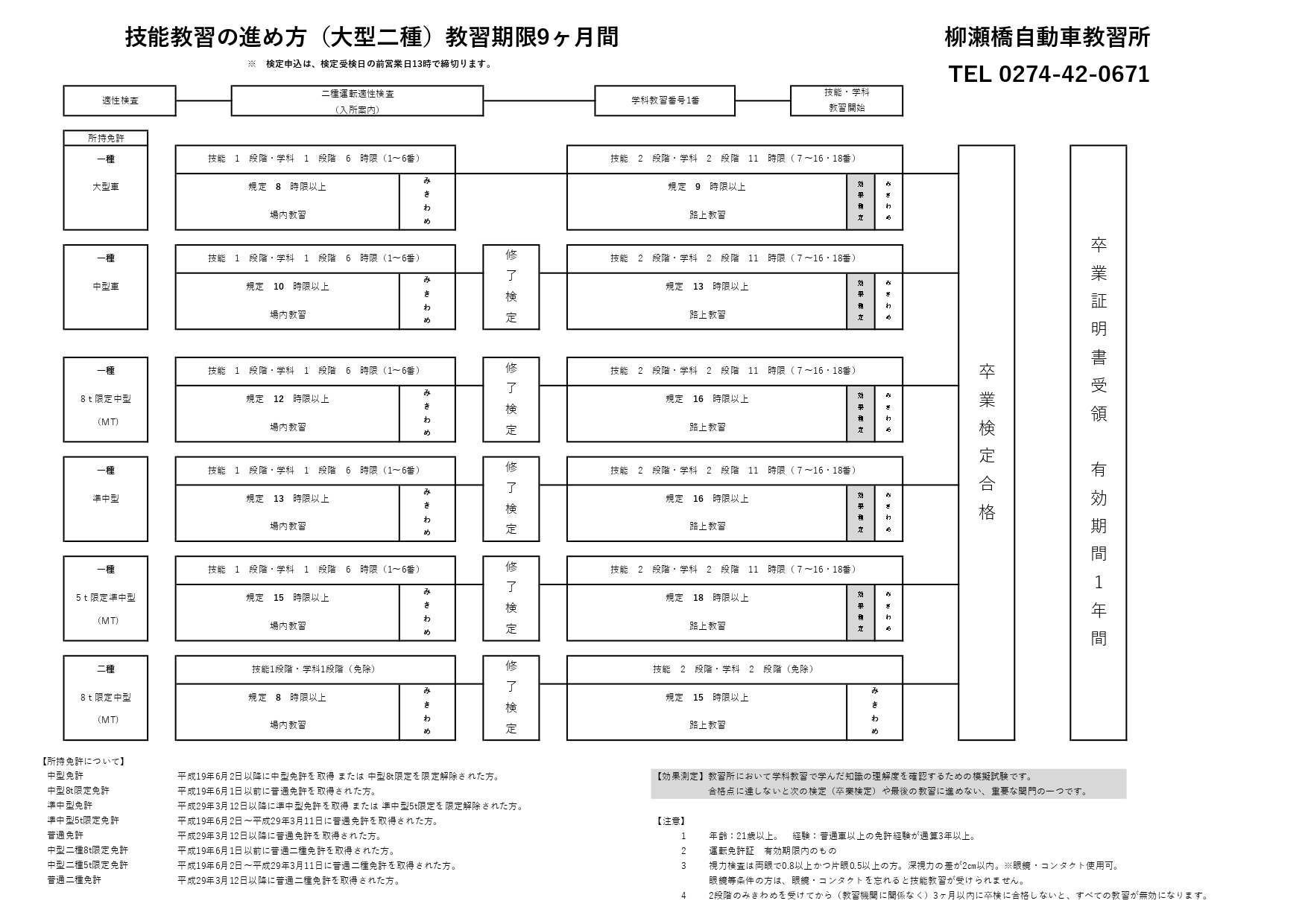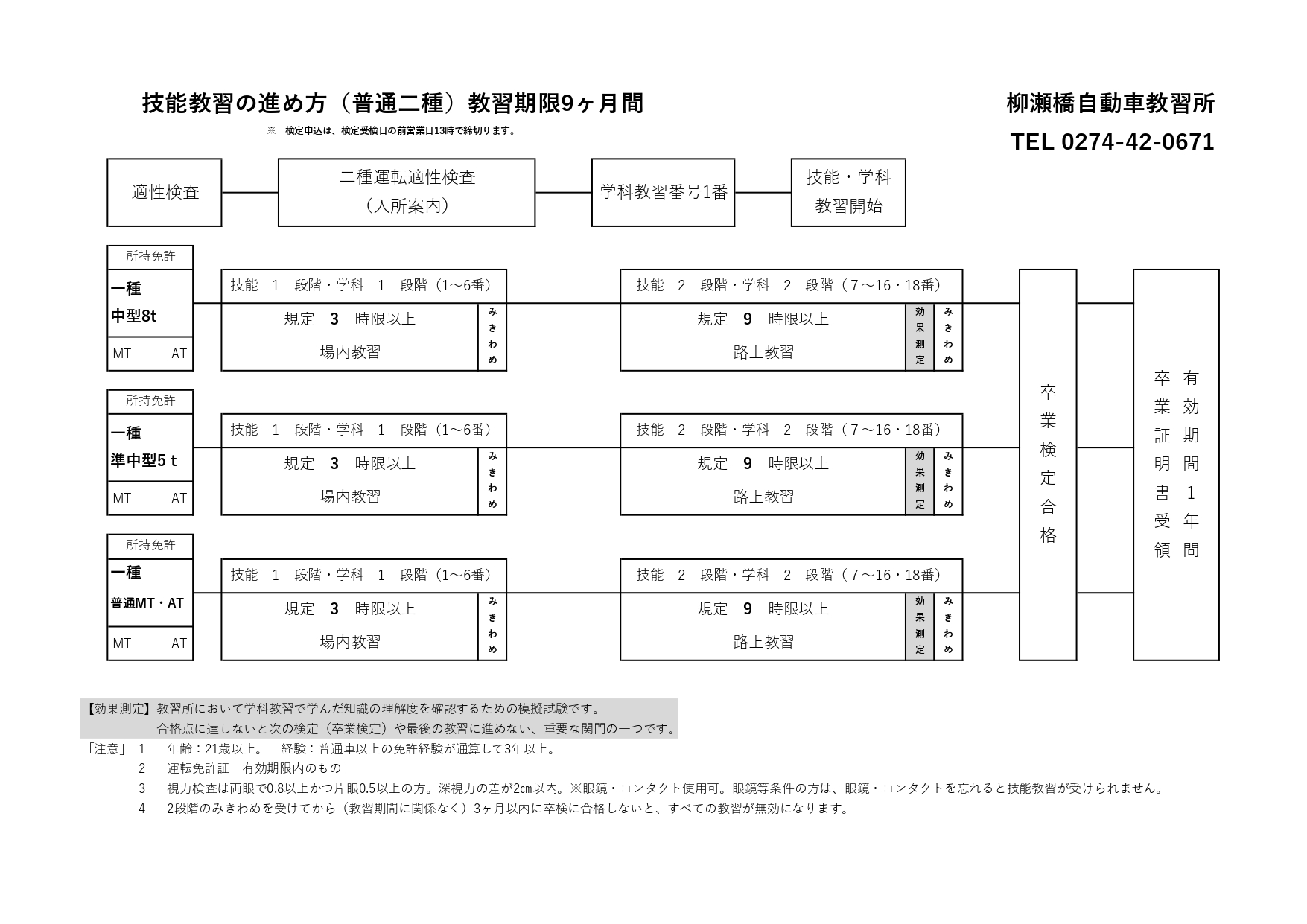 教習は9ヶ月以内に全部の教習(みきわめ)を終了させて下さい。